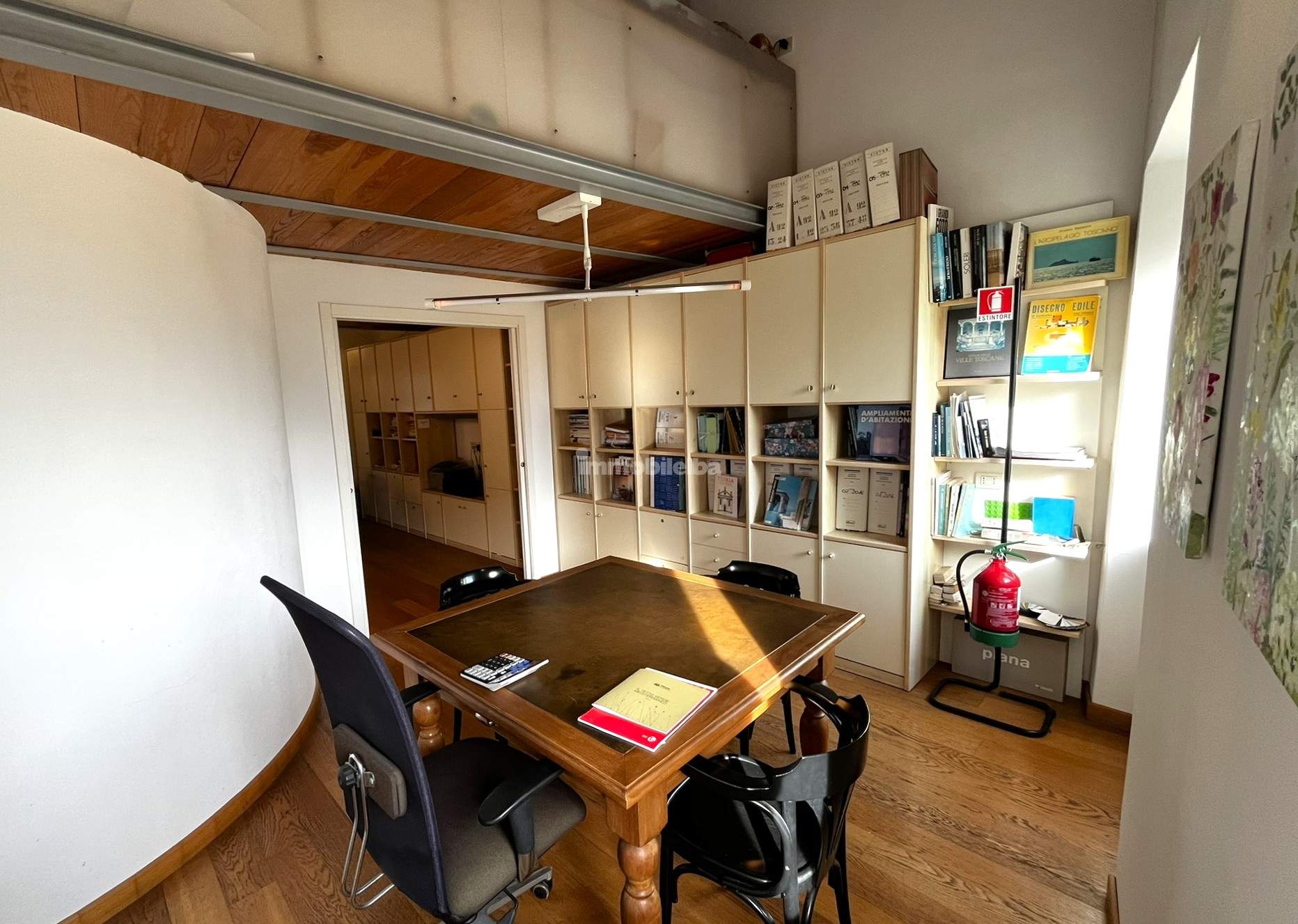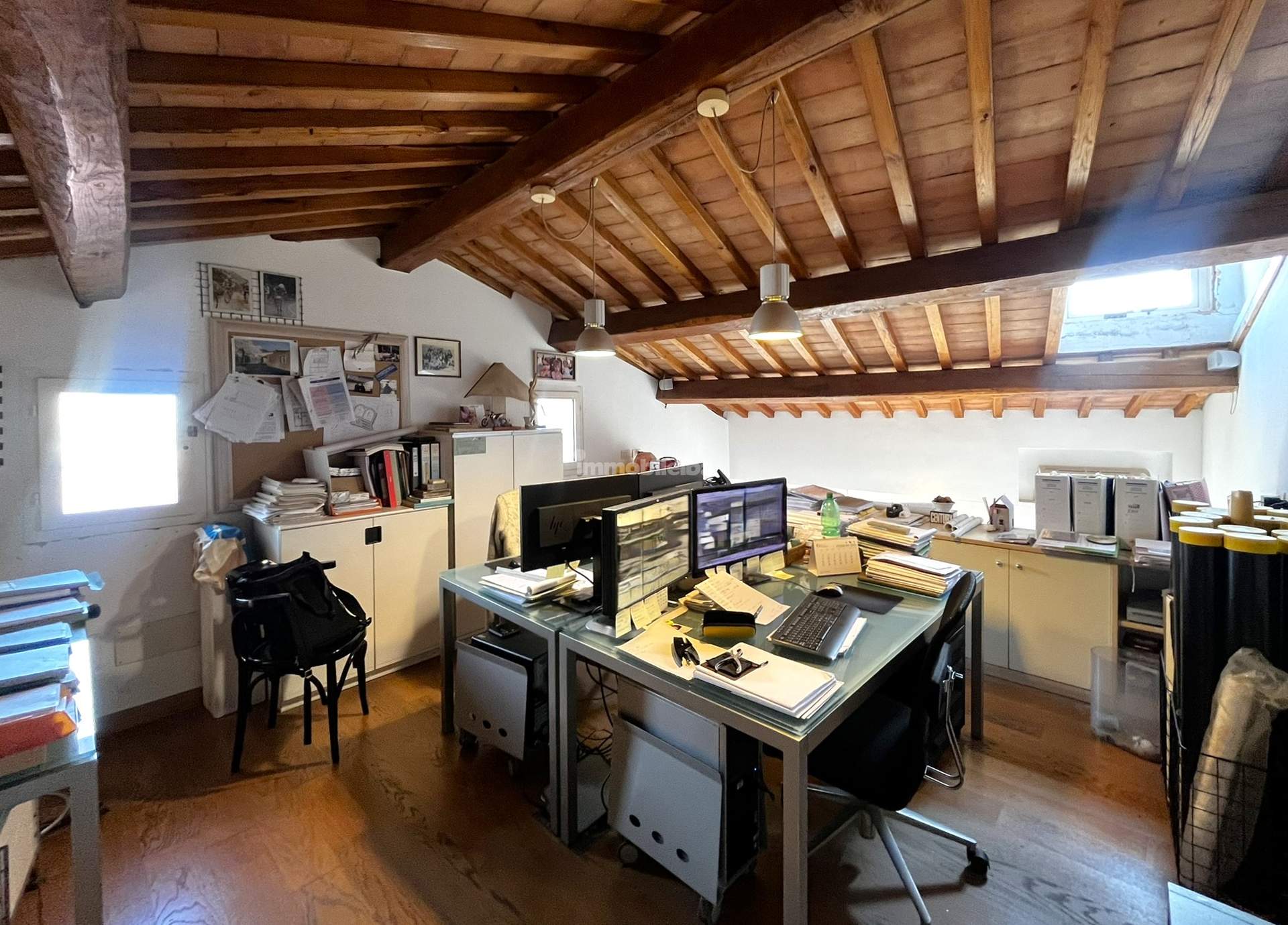 Derzeit wird die Immobilie als Büro genutzt, bietet jedoch eine Raumaufteilung, die sich leicht in eine gemütliche Wohnung umgestalten lässt. Im Eingangsbereich kann eine Küche realisiert werden, die durch eine großzügige Öffnung mit einem zweiten Bereich verbunden ist, der als Wohn- bzw. Aufenthaltsraum genutzt werden kann. Ergänzt wird die Etage durch ein Badezimmer sowie eine Galerieebene, ideal zur Schaffung eines komfortablen Schlafbereichs unter optimaler Nutzung der Raumhöhe.