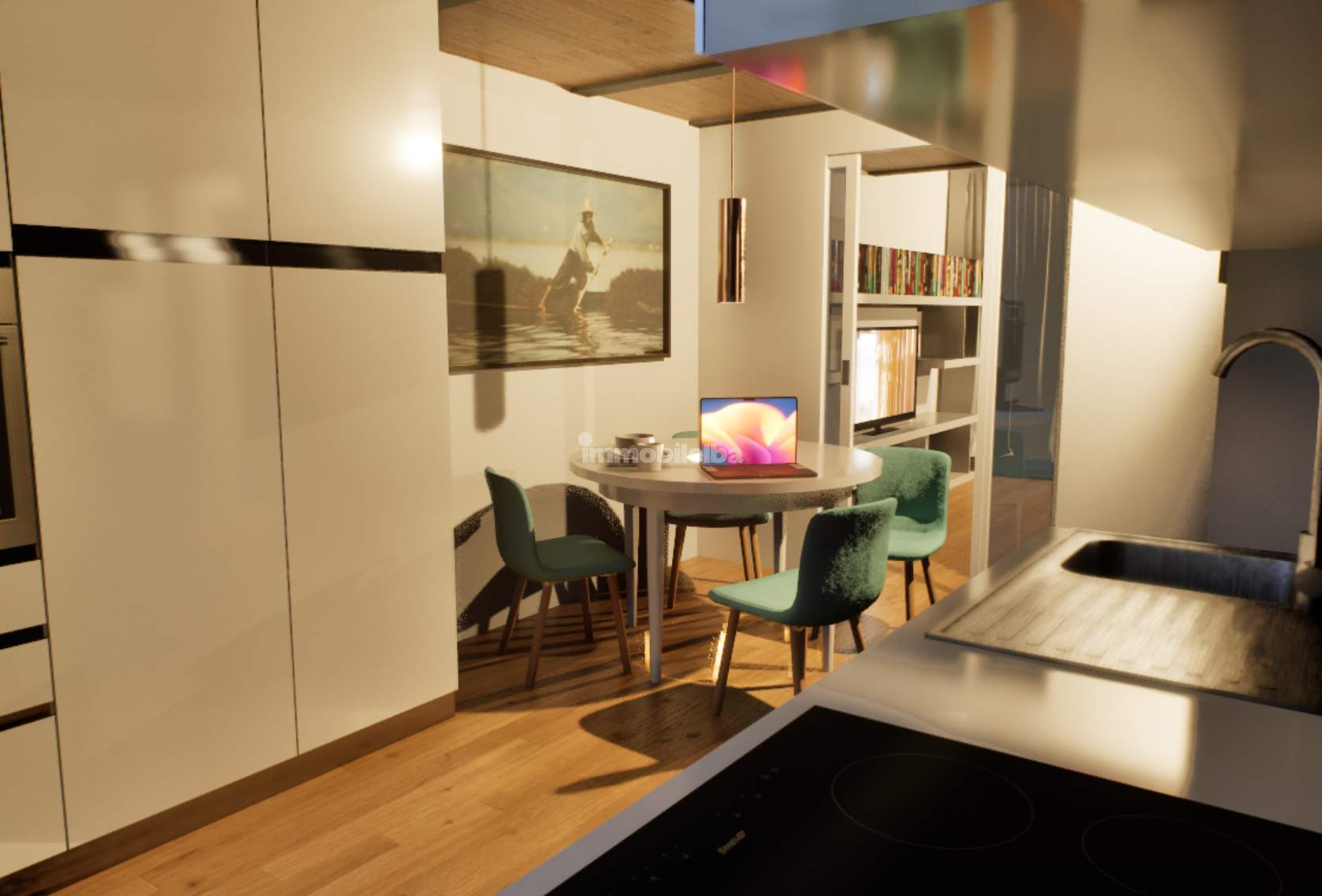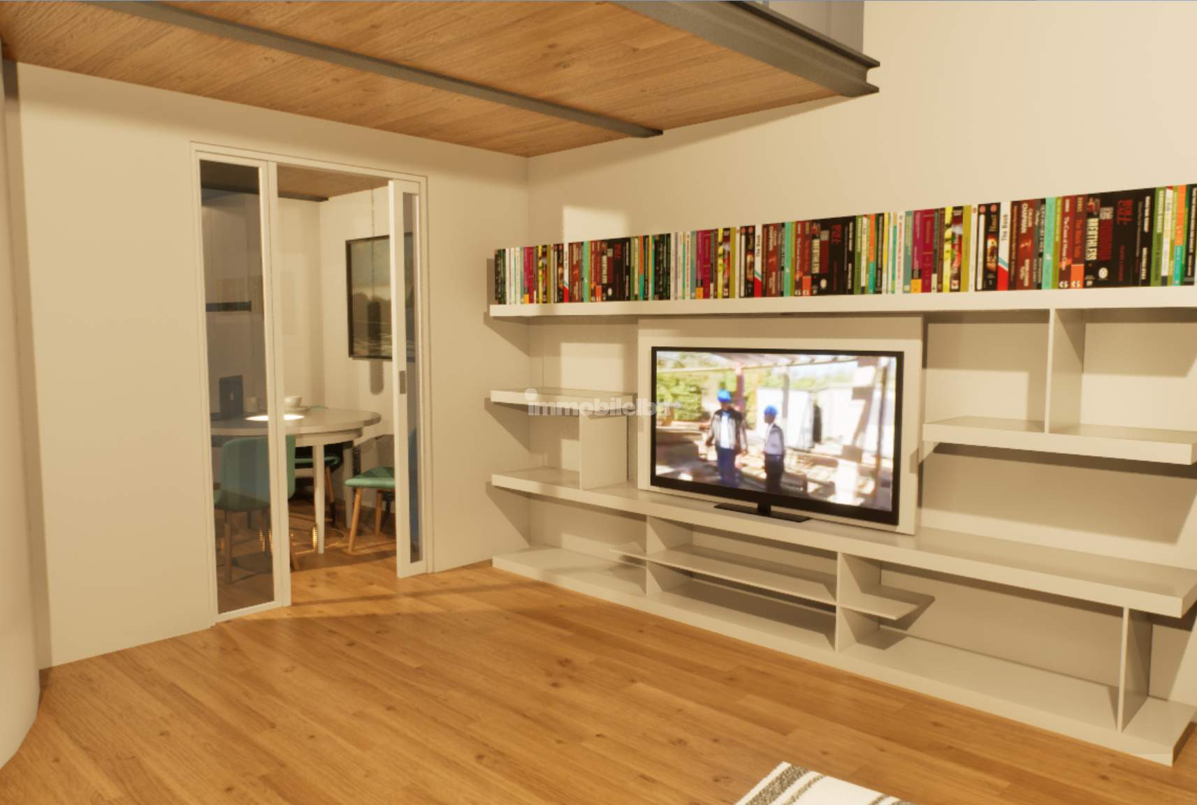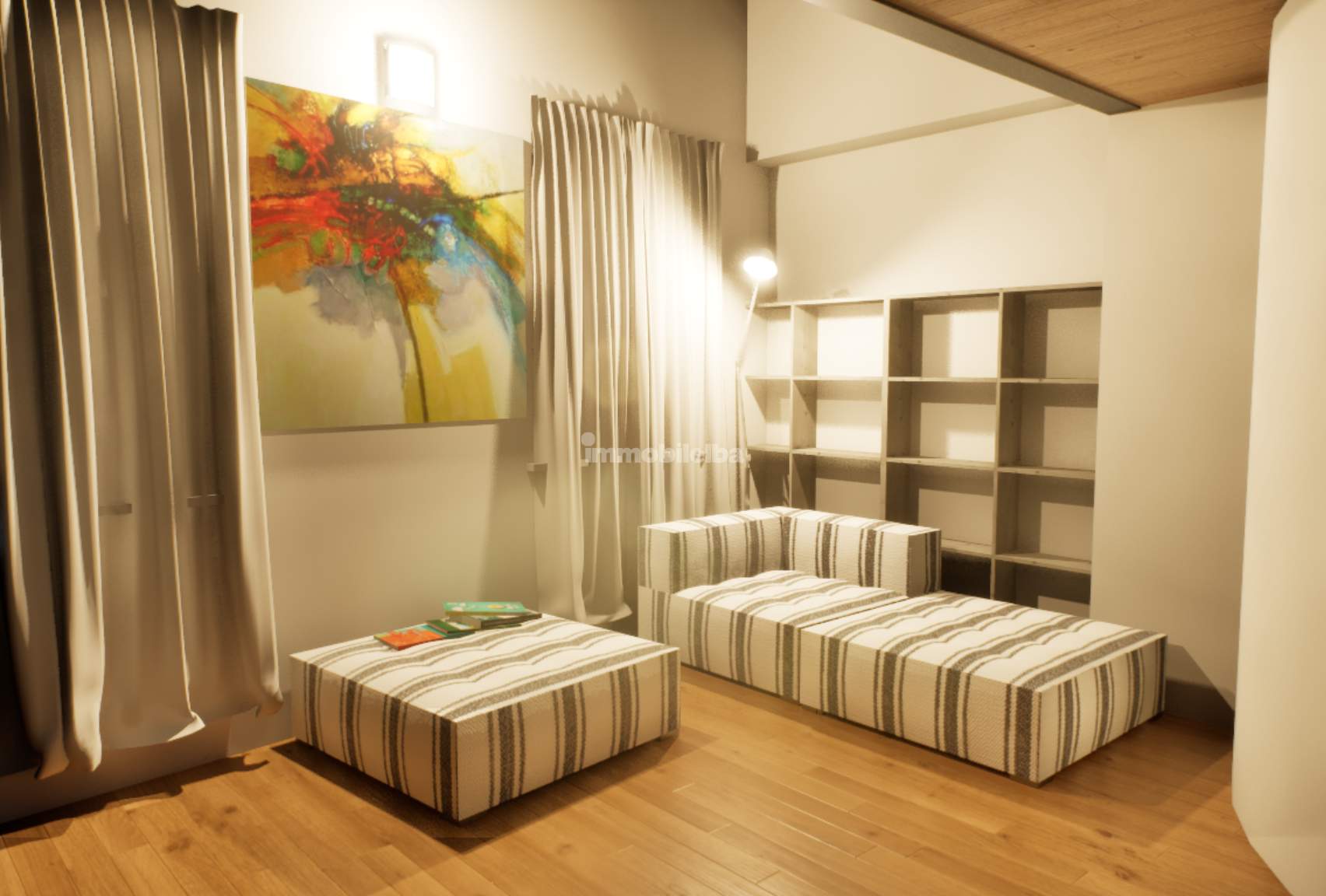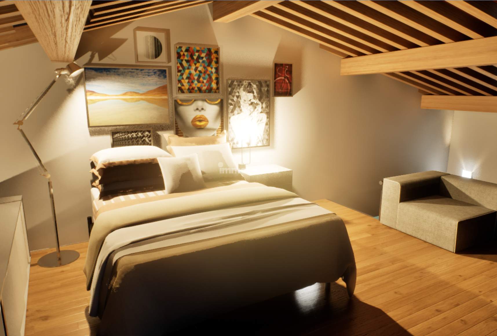 Auf den Fotos sind sowohl der aktuelle Zustand der Immobilie als auch eine Projektvisualisierung zu sehen, die hilft, sich die Umwandlung in Wohnraum besser vorzustellen.