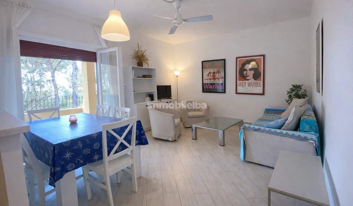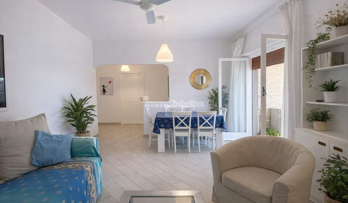 Nur 50 Meter vom Strand von Marina di Campo entfernt, bequem erreichbar über einen Fußweg, der an das Wohnhaus angrenzt, befindet sich eine geräumige und helle Wohnung im ersten Stock.