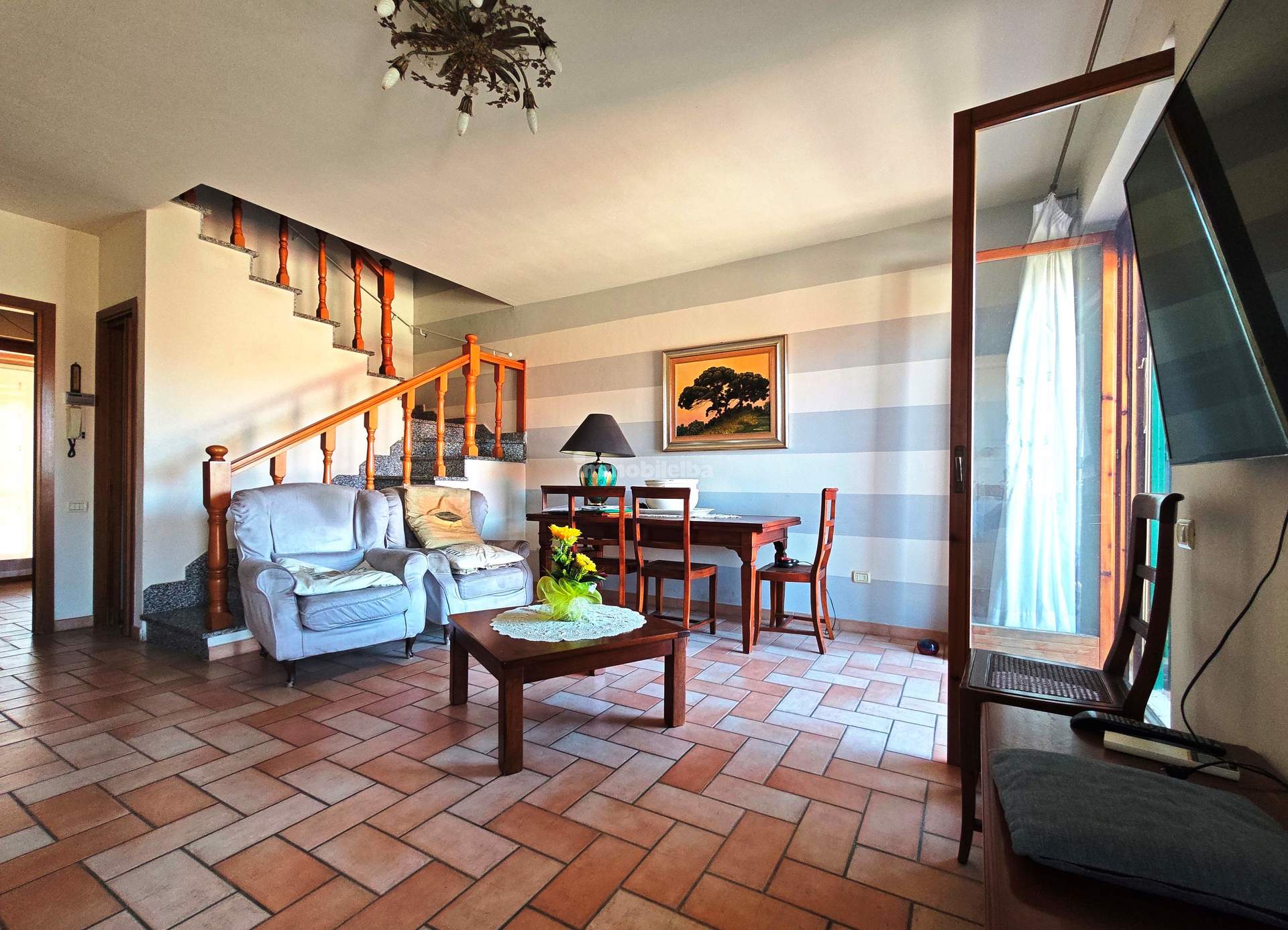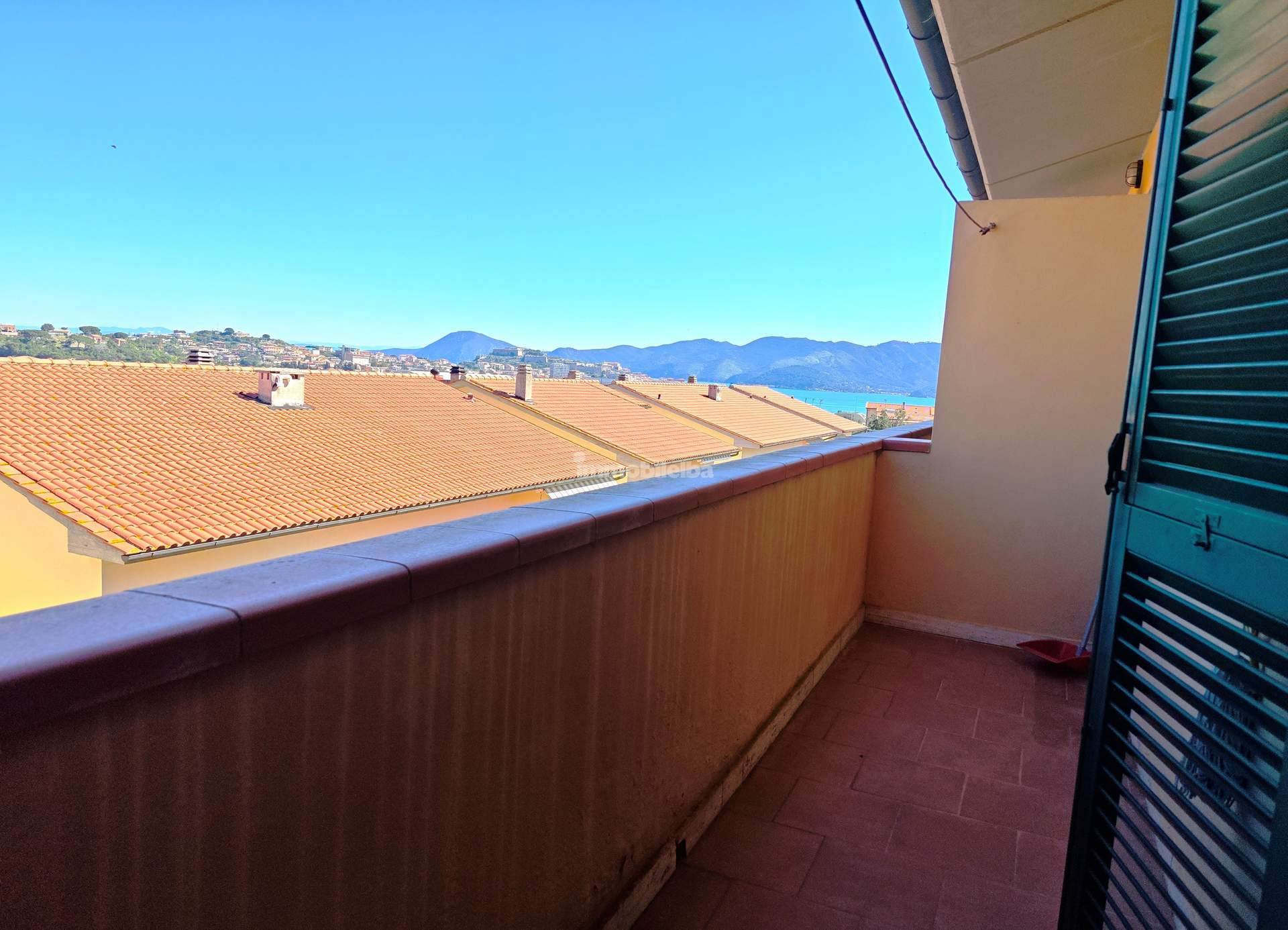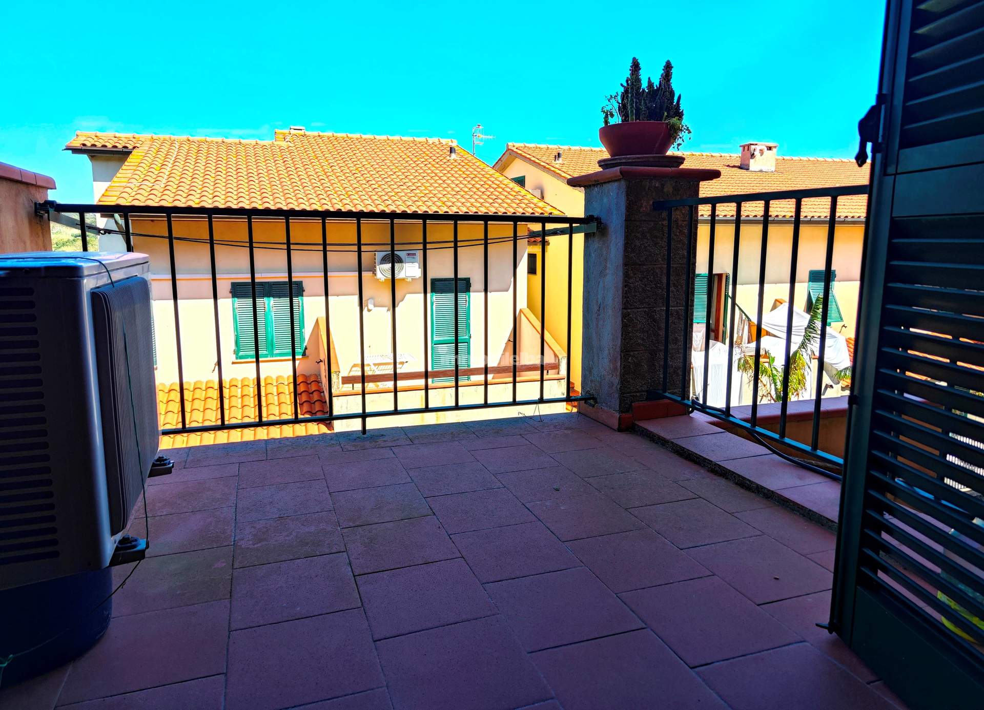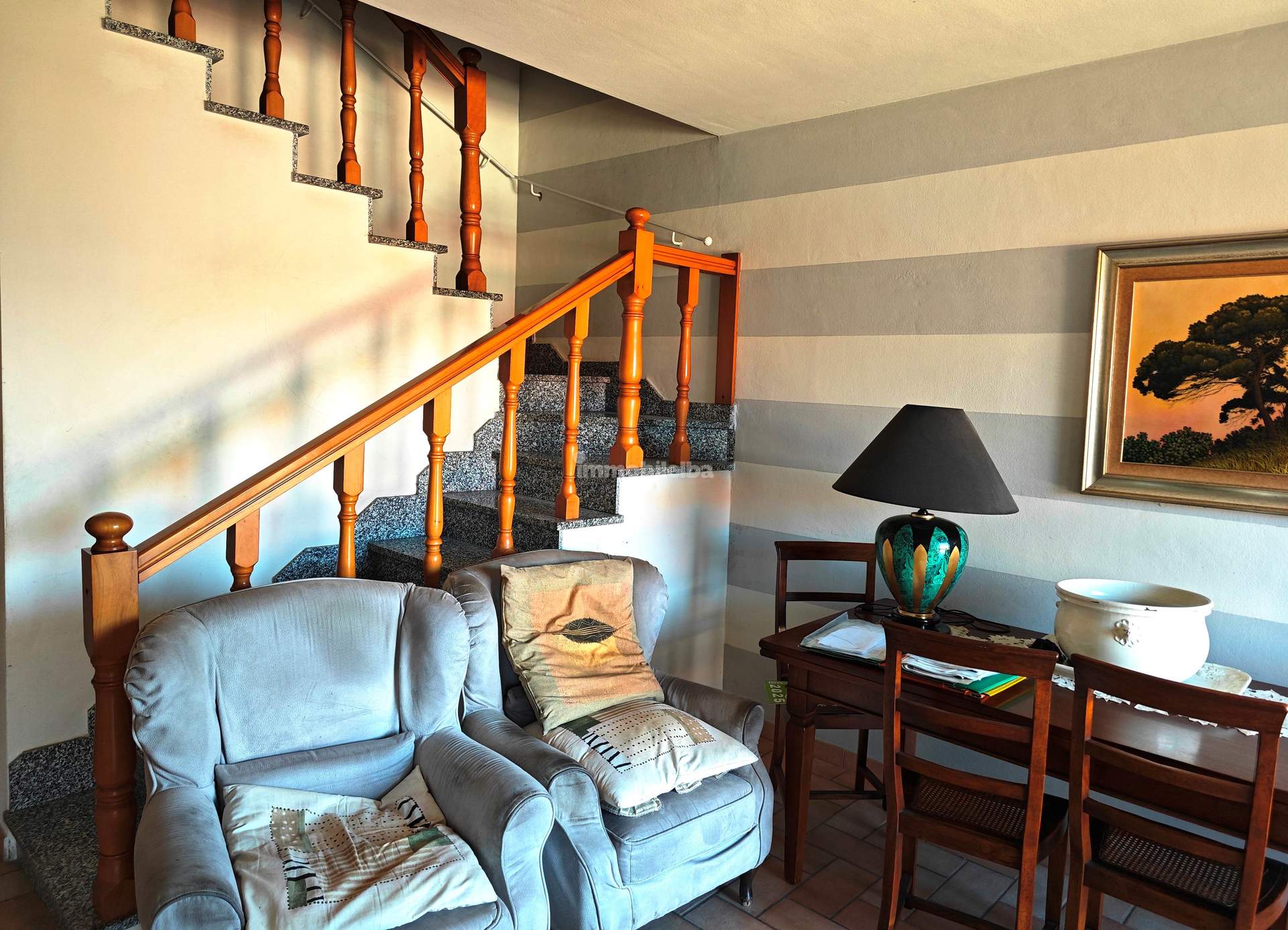 Das Haus erstreckt sich über zwei Etagen und besteht im Erdgeschoss aus einem großen und hellen Wohnbereich mit Bad, einer Wohnküche, einer Veranda und einer Terrasse, während im Obergeschoss zwei Schlafzimmer, ein weiteres Bad und eine Terrasse mit Meerblick zu finden sind.
