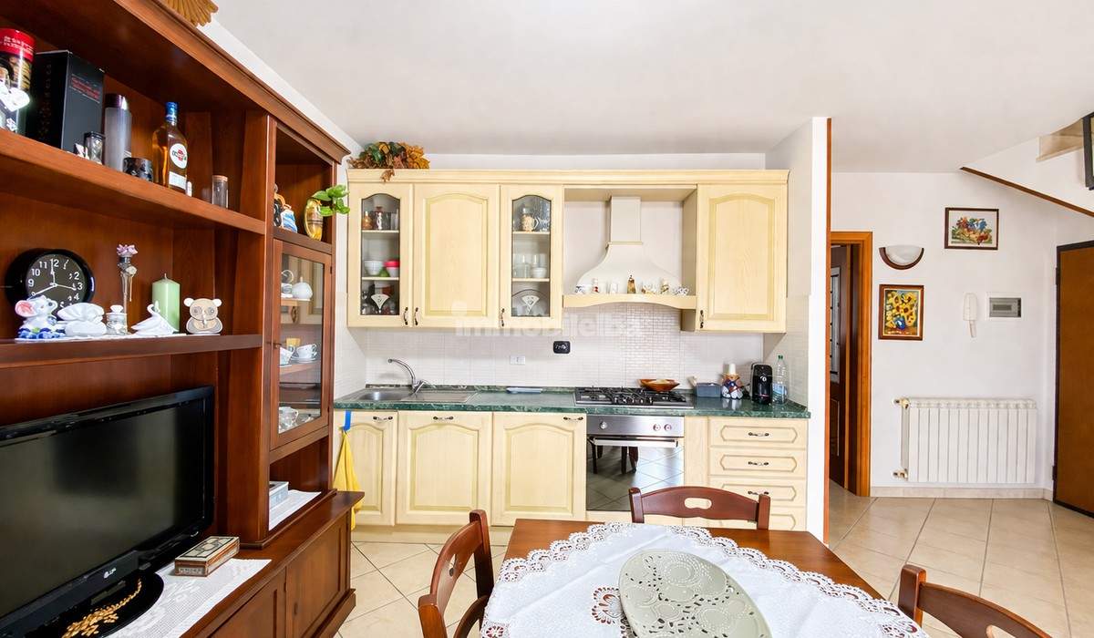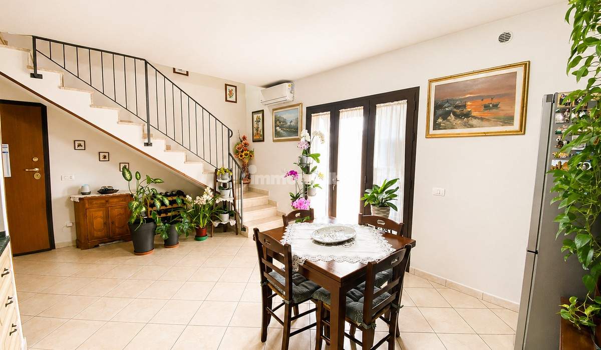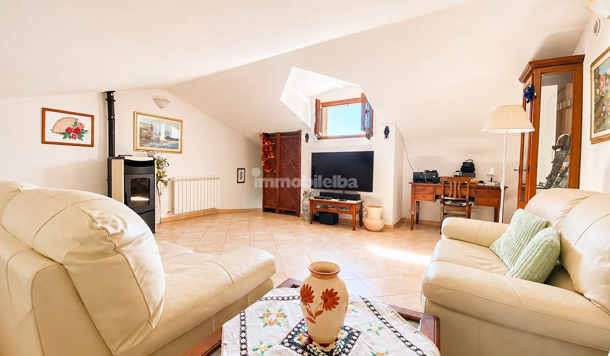 Im Dachgeschoss, das über eine bequeme Innentreppe erreichbar ist, gibt es einen weiteren geräumigen Raum, der derzeit als Wohnzimmer genutzt wird, sowie Dachräume zur Lagerung, ideal zur Aufbewahrung von sperrigen Gegenständen. Die Immobilie verfügt über einen privaten Parkplatz, Heizung mit einer Gas-GPL-Heizung, einen Pelletofen und eine Klimaanlage für Wärme/Kälte.