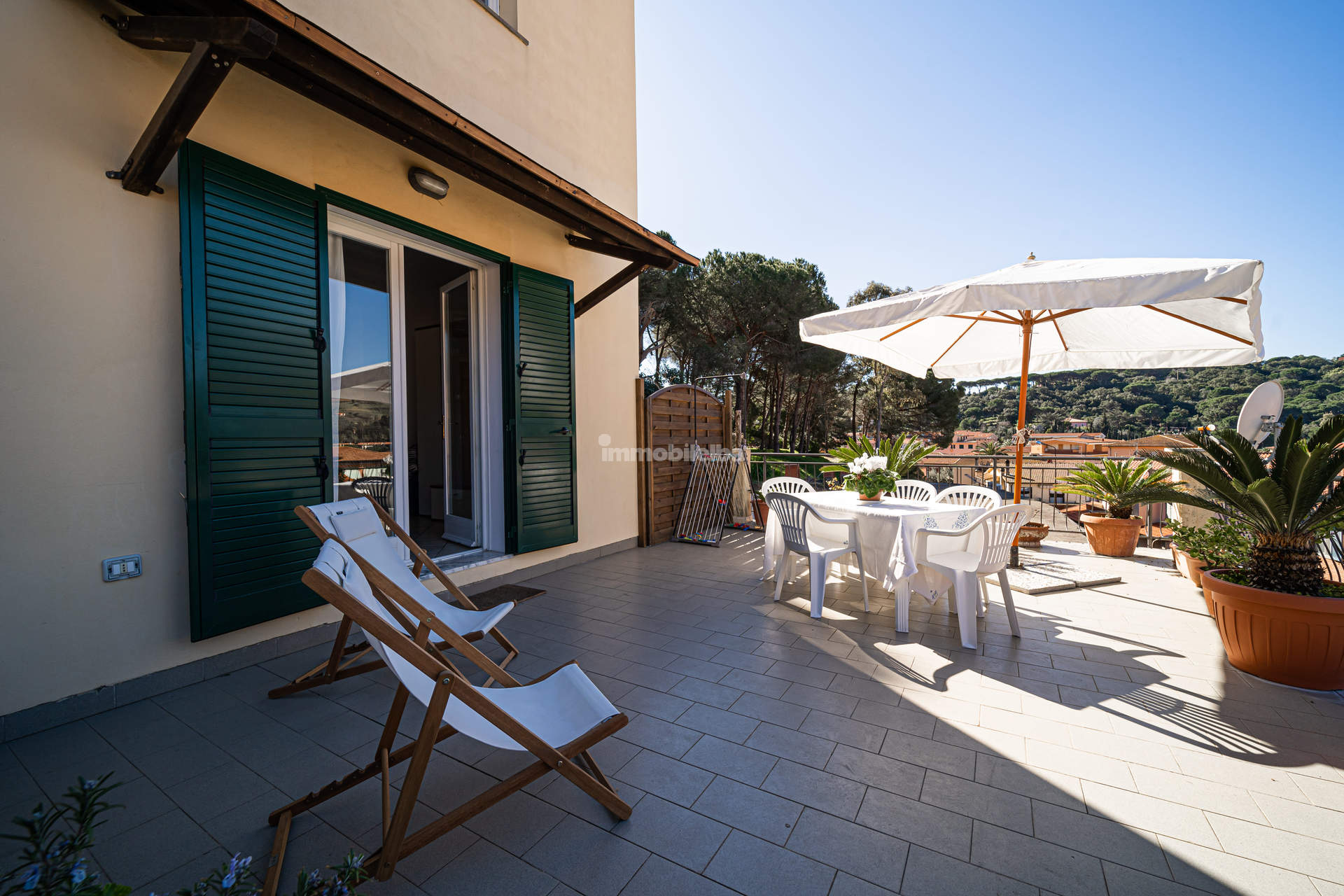 In einer gepflegten Wohnanlage befindet es sich in hervorragender Lage, nahe am Meer und nur wenige Kilometer vom Zentrum von Marina di Campo entfernt, einer Wohnung mit eigenem Eingang und privatem Außenbereich, alle mit herrlichem Meerblick. Die Wohnung verfügt über einen gepflasterten Außenberei...