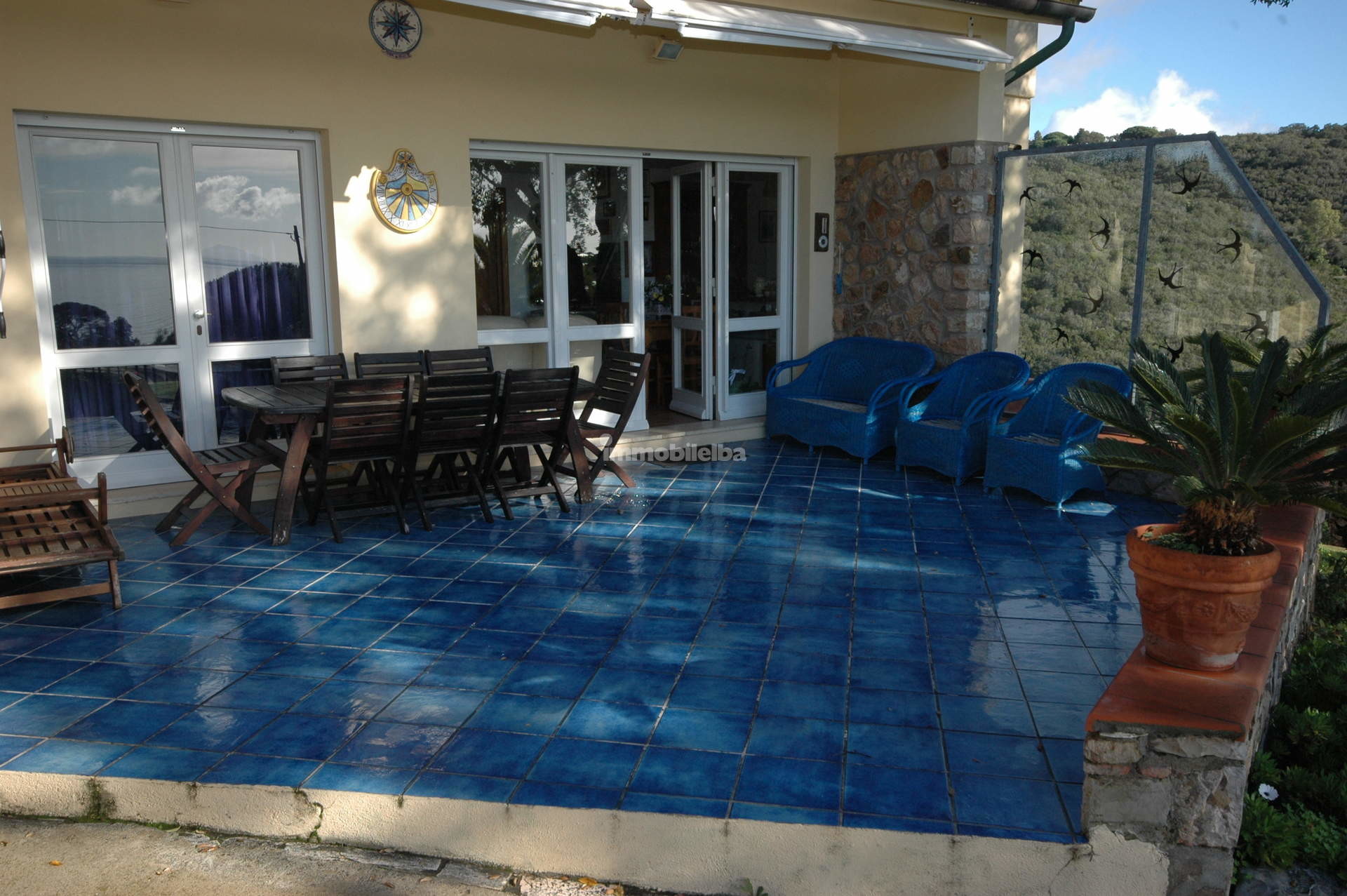 Nur wenige Schritte vom Strand von Felciaio entfernt, einem der schönsten Orte an Elbas Südküste, liegt diese zweistöckige Villa mit großem Privatgarten in traumhafter Lage direkt am Meer. Das Erdgeschoss umfasst ein Wohnzimmer, ein Esszimmer mit Panoramafenstern und Terrasse, eine Küche, ein Schlafzimmer und ein Badezimmer. Das Obergeschoss, das von der Terrasse aus zugänglich ist, bietet ein weiteres separates Schlafzimmer, ein Wohnzimmer und ein Badezimmer. Der große, gepflegte Garten mit Grillplatz sowie die möblierten Privatterrassen mit atemberaubendem Meerblick und dem beruhigenden Rauschen der Wellen machen dieses Anwesen ideal für Naturliebhaber und Erholungssuchende.