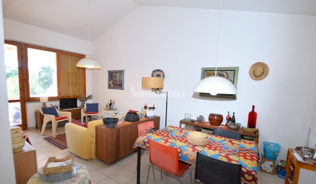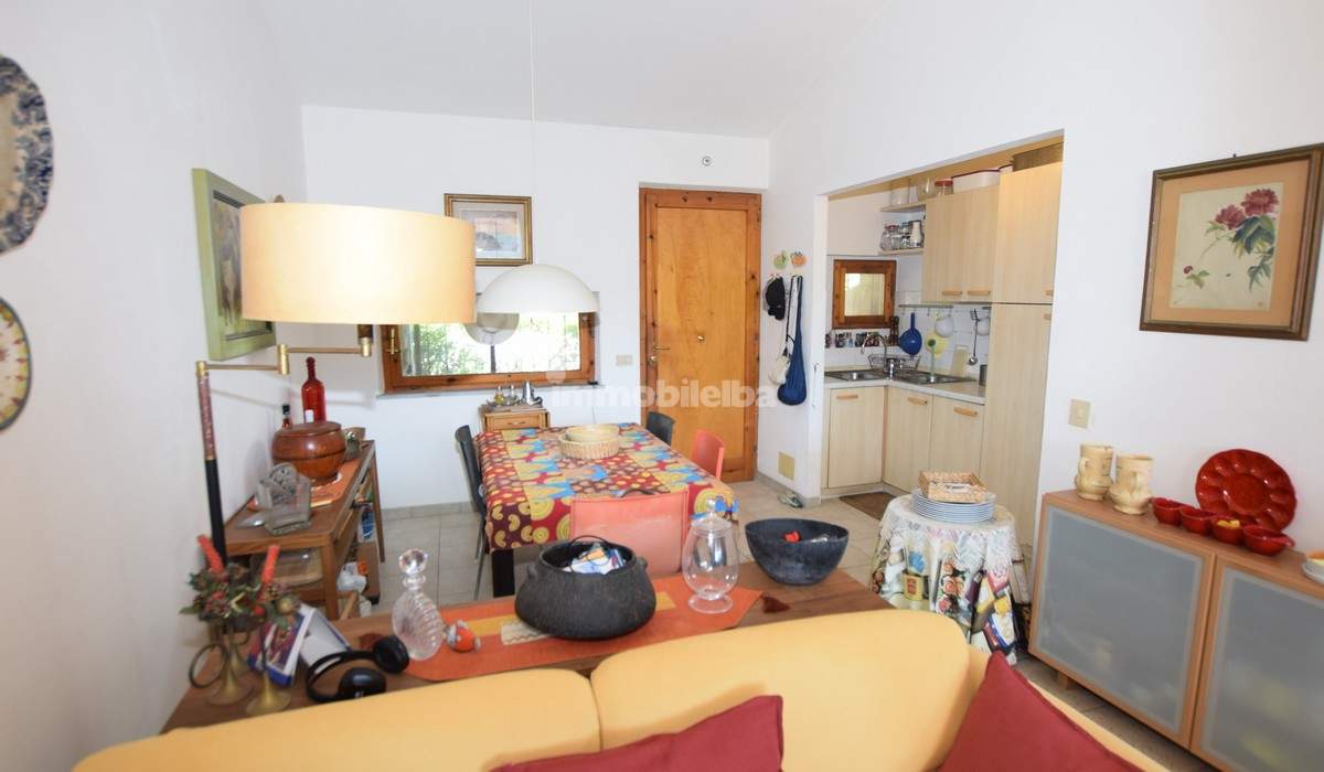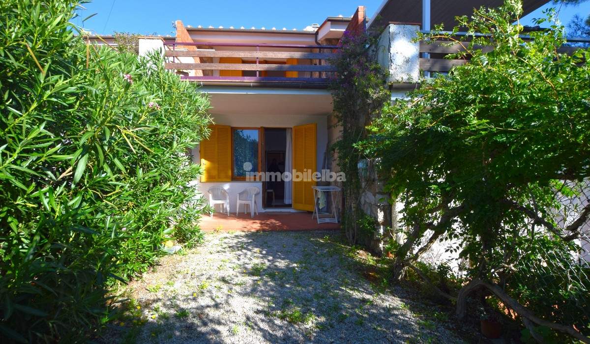 In der renommierten und prestigeträchtigen Umgebung von Campo all'Aia, in Procchio, befindet sich eine unabhängige Wohnung, die Teil eines Reihenhauses ist und mit allen Annehmlichkeiten ausgestattet ist. Die Immobilie erstreckt sich über zwei Ebenen und verfügt über einen komfortablen privaten Garten mit Eingang und überdachtem Bereich, ein Wohnzimmer mit Kochnische, das Zugang zur großen Terrasse von etwa 30 m mit herrlichem Blick auf das Meer und die Sommerabende bietet. Im Untergeschoss befinden sich zwei kleine Schlafzimmer, zwei Bäder, ein Abstellraum, ein Schlafzimmer mit Zugang zu einem weiteren kleinen Garten und einer überdachten Terrasse. Es gibt einen privaten Parkplatz und die Immobilie befindet sich in gutem Wartungszustand. Ideal für diejenigen, die Ruhe und die Nähe zur wunderschönen Bucht von Procchio suchen.