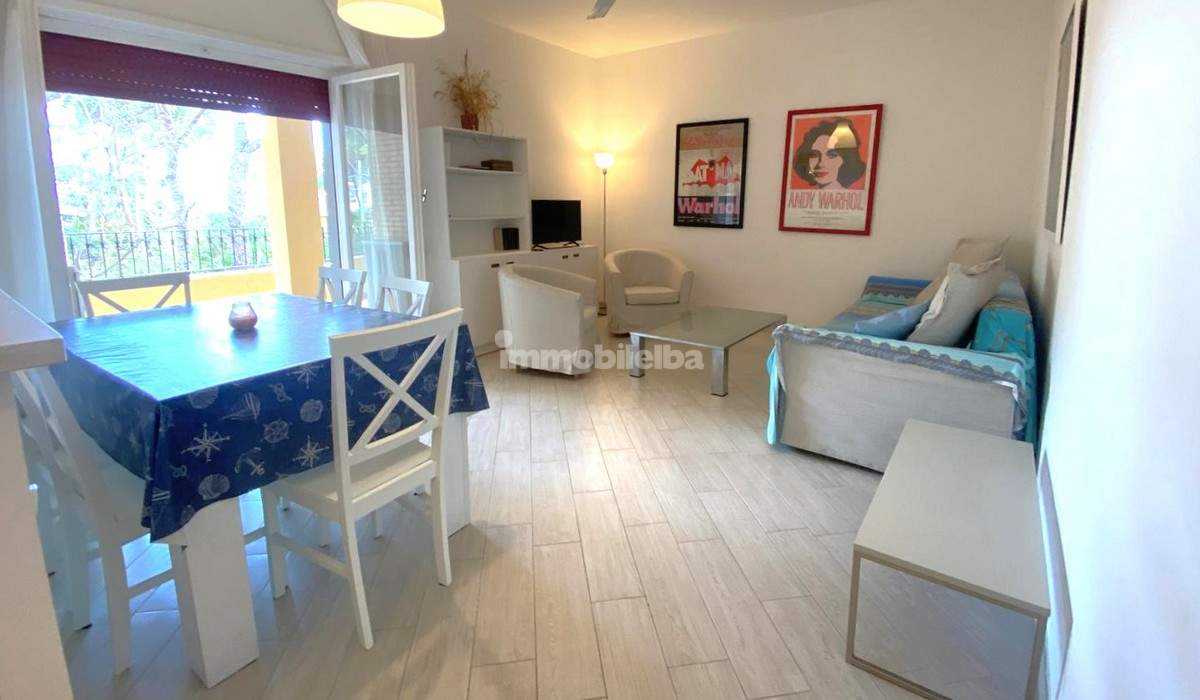 Nur 50 Meter vom Strand von Marina di Campo entfernt, bequem erreichbar über einen Fußweg, der an das Wohnhaus angrenzt, befindet sich eine geräumige und helle Wohnung im ersten Stock.