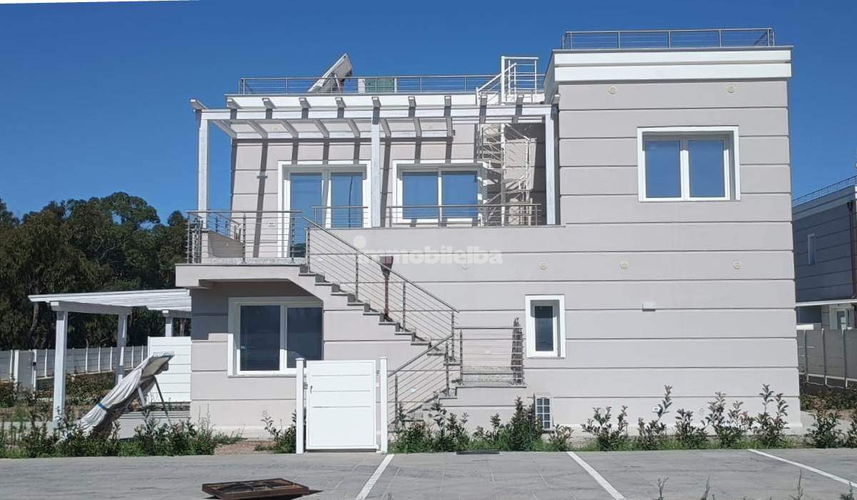 In einer neu erbauten Doppelhaushälfte, umgeben von einem eingezäunten und angelegten Garten, unweit des malerischen Dorfes Capoliveri, befindet sich dieses freistehende, zweistöckige Gebäude mit privaten Außenbereichen und Terrassen. Das Anwesen erstreckt sich über zwei Ebenen: Das Erdgeschoss best...